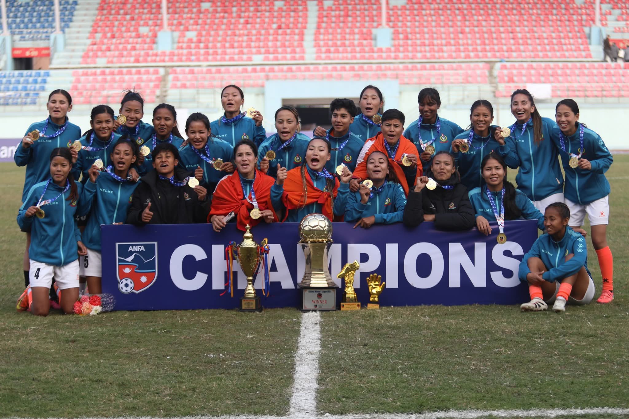 Kathmandu: Departmental giants Nepal APF Club clinched ANFA Women’s League in dominant fashion defeating Nepal Police Club 4-0 in the final at Dasharath Stadium in Tripureshwar, Wednesday.