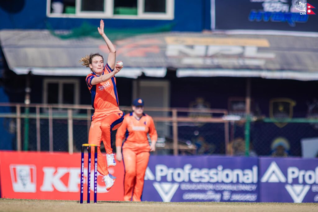 The Netherlands bowlers Iris Zwilling (1/24) and Caroline de Lange (1/22) picked up a wicket each.