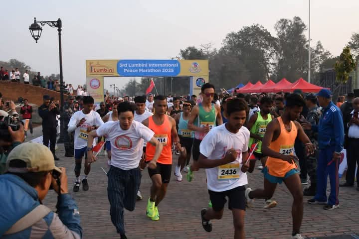The marathon started from Lumbini Square and finished at the same point. The Peace Marathon was organised by the Nepal Olympic Committee with support from the Chinese Embassy.