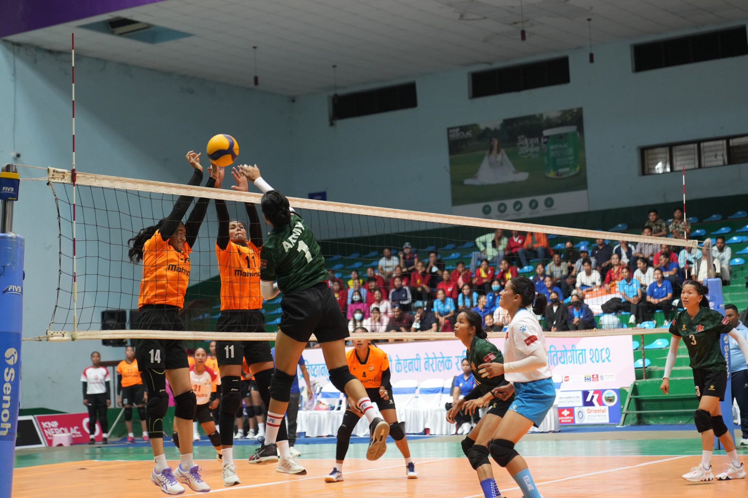 Kathmandu: Nepal Police Club and New Diamond Academy entered into the semifinals of the Sher Bahadur Khadka Memorial National Women’s Volleyball Tournament at the Dasharath Stadium covered hall after playing their first games.