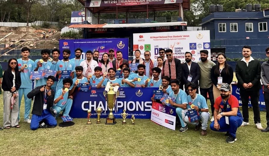 The tournament was organised in the memory of the late Dambar Dhami by the ANNFSU Eastern University National Committee. Dhami, originally from Dadeldhura, had completed his engineering studies from HIST Engineering College and died last year following a road accident.