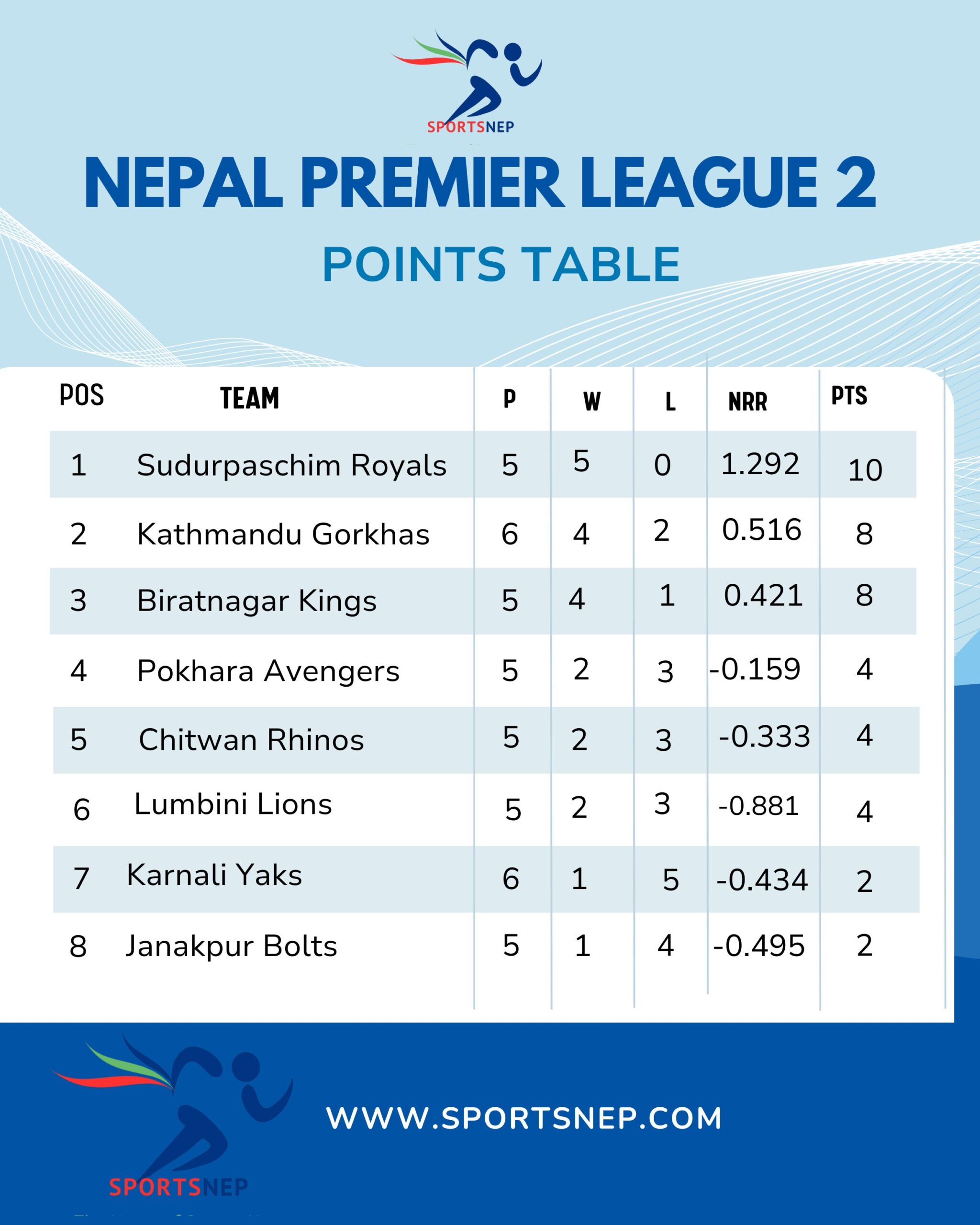 Biratnagar Kings will take on Lumbini Lions in Wednesday’s only fixture at 4:00 PM.
