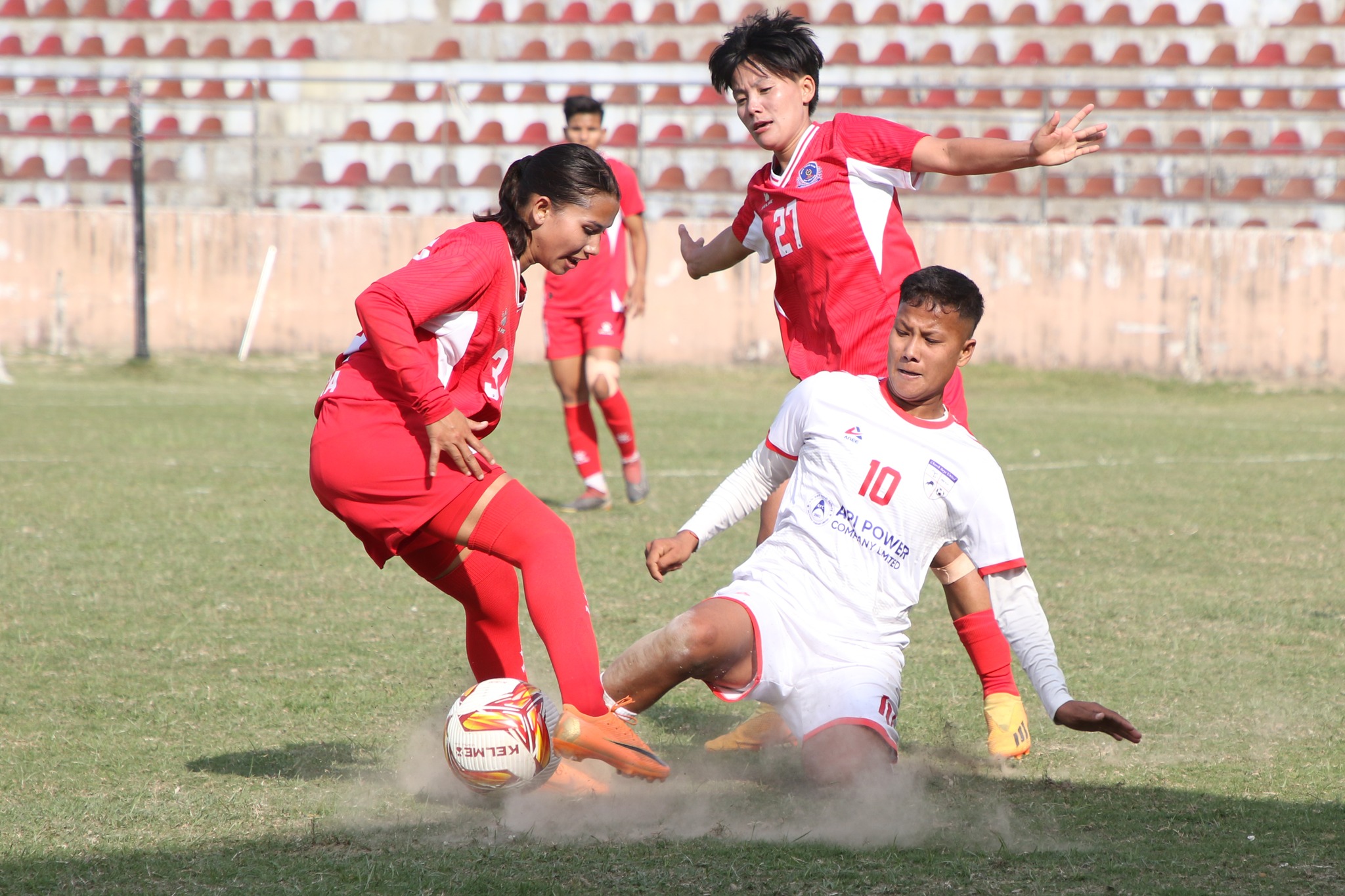 Kathmandu: Strikers Meena Deuba and Rekha Paudel scored two goals each as departmental giants Nepal Police Club Women’s Team kicked off their Martyrs Memorial Women’s League campaign in dominant fashion with a 5–0 drubbing of Church Boys United Women’s Team on Thursday.